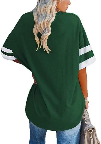 เสื้อยืดคอกลมแขนสามส่วนขนาดใหญ่พิเศษของผู้หญิงเสื้อยืดสีเขียวทรงหลวมระบายอากาศได้ผ้าแคนวาสปักลายสไตล์ลำลอง