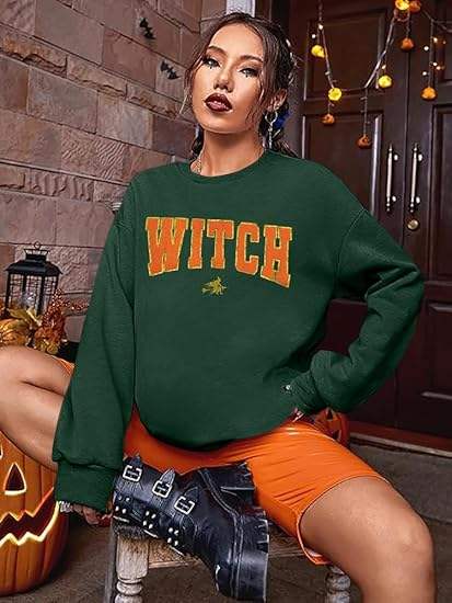 เสื้อสเวตเตอร์ขนแกะมีฮู้ดพิมพ์ลายแม่มดวันฮาโลวีนขนาดใหญ่เสื้อสวมหัวแขนยาวมีกระเป๋า2025แฟชั่นใหม่