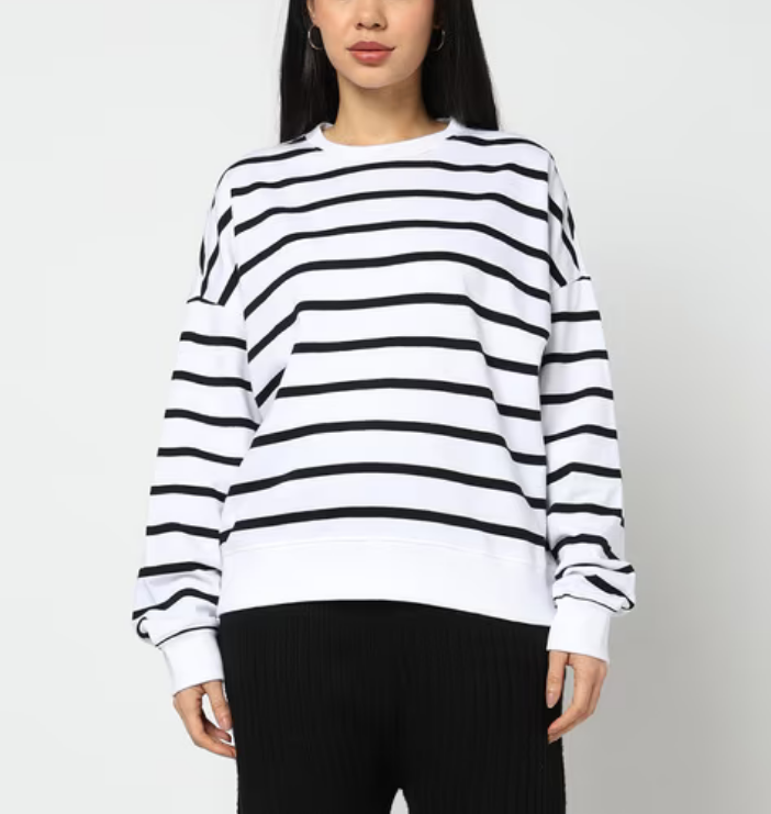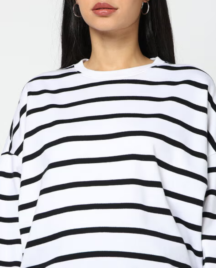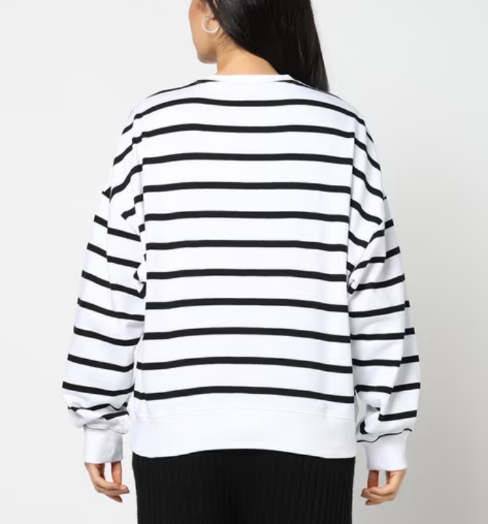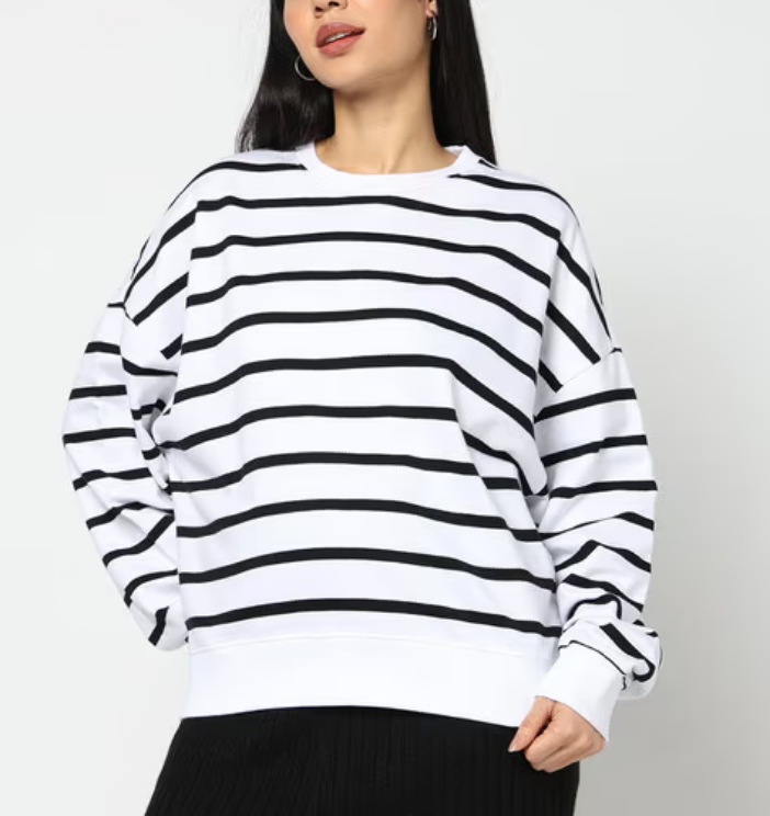 เสื้อฮู้ดดี้โอเวอร์ไซส์ผู้หญิง สไตล์วินเทจ เสื้อฮู้ดคู่รัก ทรงหลวม ไหล่ตก ลายทาง เสื้อสเวตเชิ้ตโอเวอร์ไซส์ แฟชั่นสตรีทแวร์