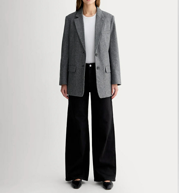 เสื้อเบลเซอร์ลำลองทรงโอเวอร์ไซส์สีกากีสำหรับผู้หญิง ผ้าเนื้อบางเบา ติดกระดุมแถวเดียว มีกระเป๋า