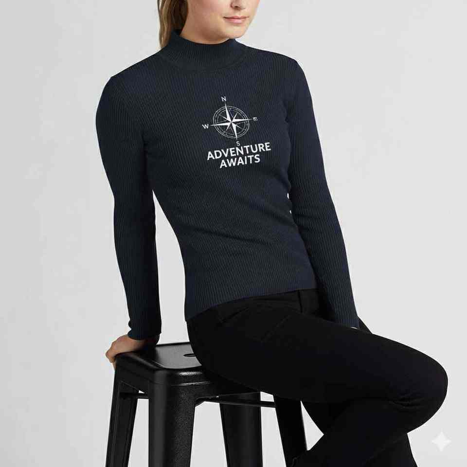 Women's Long Oversized Mock Neck Sweatshirt with Front Embroidered Custom Logo Printed Daily Wear for Autumn/Winter
