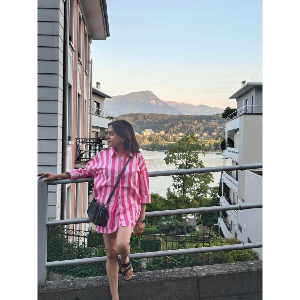 เสื้อเชิ้ตผู้หญิงไซส์ใหญ่ลายทางสีชมพู ผ้าฝ้าย 100% ขนาด 26 นิ้ว เสื้อทรงสวยหรูสำหรับทุกโอกาส