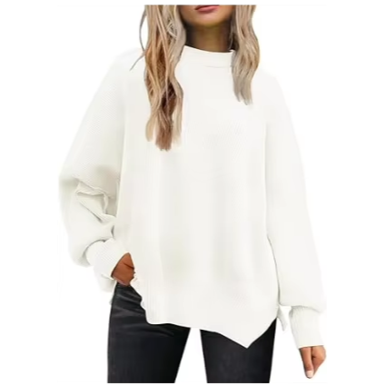 เสื้อสวมหัวโอเวอร์ไซส์ของผู้หญิงเสื้อแฟชั่นอินเทรนด์ฤดูหนาวคอกลมด้านหน้าโลโก้ลำลองผ่าข้างผ้าโพลีเอสเตอร์/ ผ้าฝ้ายไม่เป็นรอย
