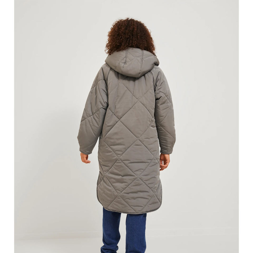 เสื้อแจ็คเก็ตผู้หญิงทรงโอเวอร์ไซส์แบบเย็บต่อผ้าสไตล์สตรีทแวร์ เสื้อคลุมกันหนาวสำหรับฤดูหนาว รับทำโลโก้ เสื้อแจ็คเก็ตพัฟเฟอร์ลำลองอุ่นสบาย เสื้อโค้ทบุผ้านวมเย็บต่อผ้า รับผลิตแบบ OEM
