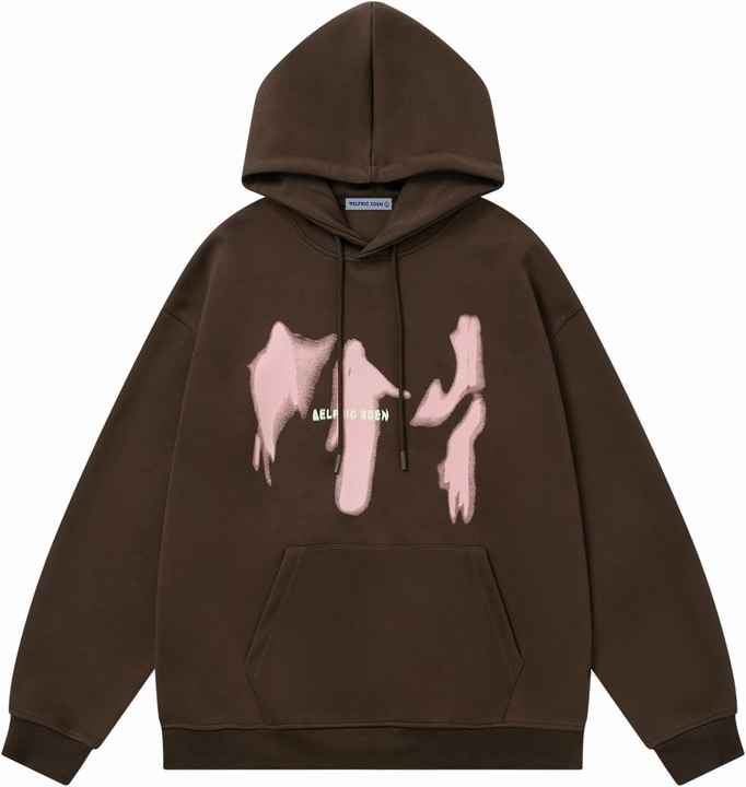 เสื้อสวมหัวมีฮู้ดโอเวอร์ไซส์วินเทจทรงแบ็กกี้เงาพิมพ์ลายเงามีกระเป๋าสไตล์สตรีทแวร์และสเวตเชิ้ต