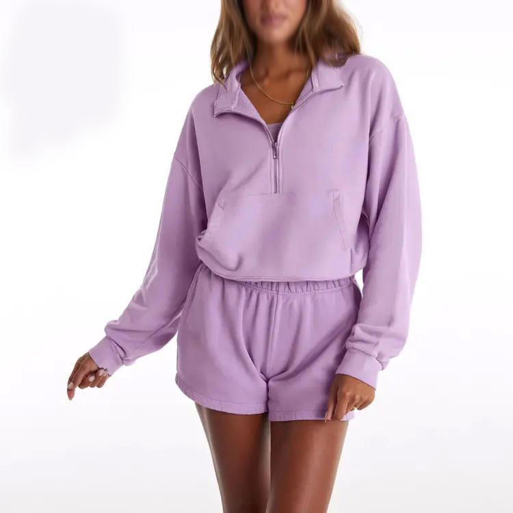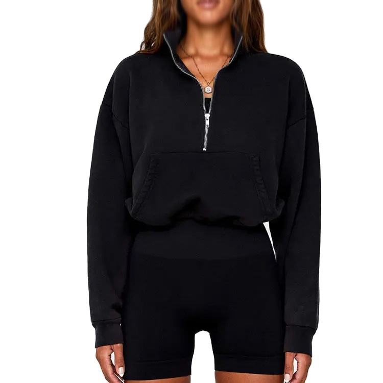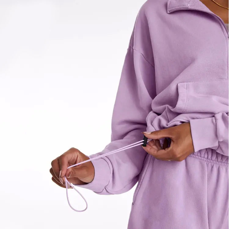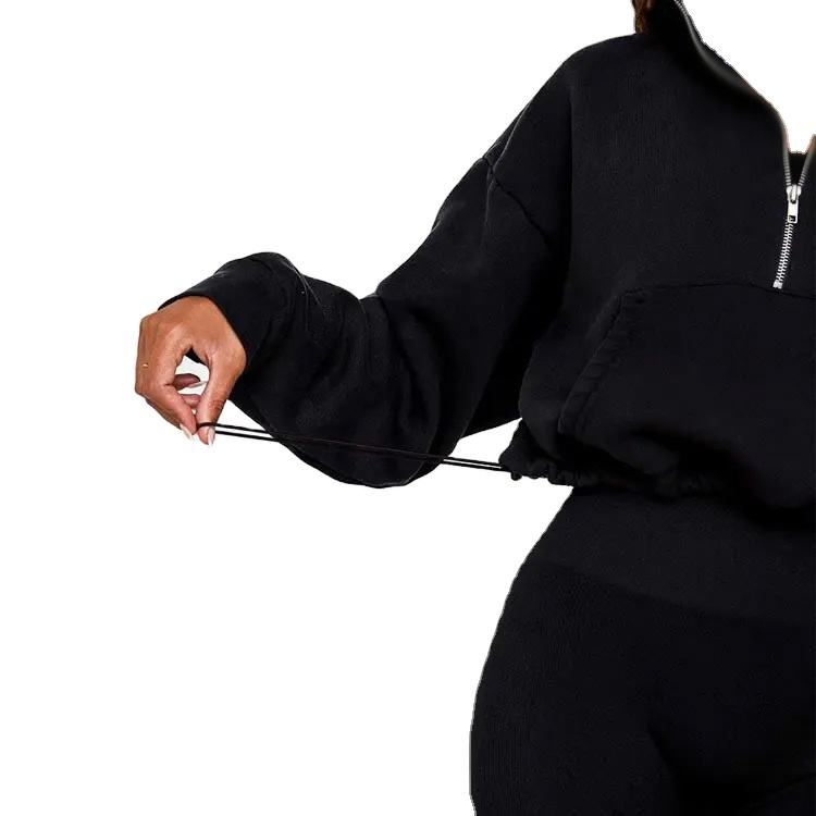 เสื้อฮู้ดออกกำลังกายผู้หญิงทรงโอเวอร์ไซส์ พร้อมเชือกปรับได้ แบบซิปครึ่งตัว สั่งทำได้