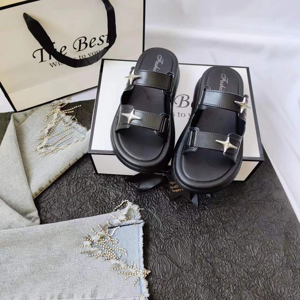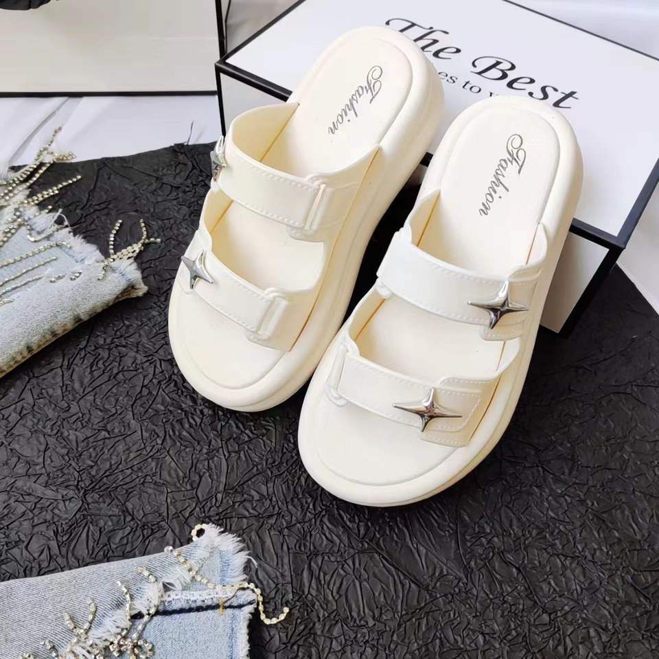 รองเท้าแตะชายหาดพื้นหนาสไลด์ส้นสูงกลางแจ้งทำจากพีวีซีของผู้หญิงสำหรับฤดูร้อน