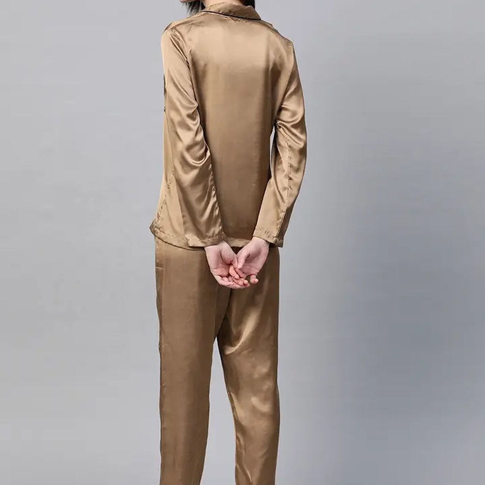 ชุดนอนผู้หญิงแบบ 2 ชิ้น ชุดนอนลายพิมพ์แขนยาว กางเกงขายาว ชุดนอนผ้าซาติน/ผ้าไหม ชุดนอนสำหรับผู้หญิง