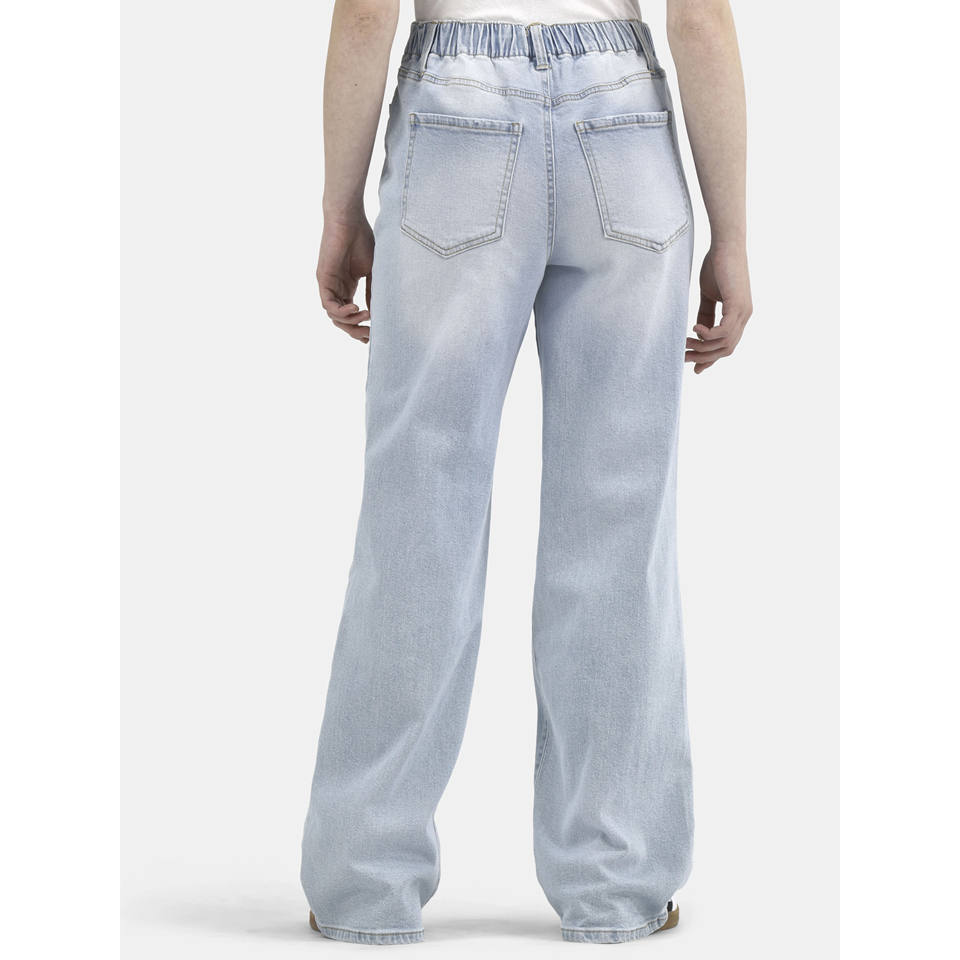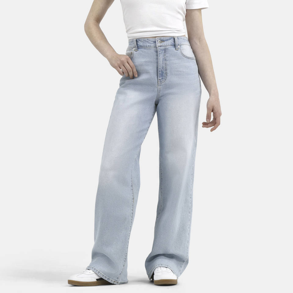 กางเกงยีนส์ผ้าฝ้ายทรงตรงเอวสูงสีพื้นสไตล์ลำลองสำหรับผู้หญิง แห้งเร็ว ระบายอากาศได้ดี