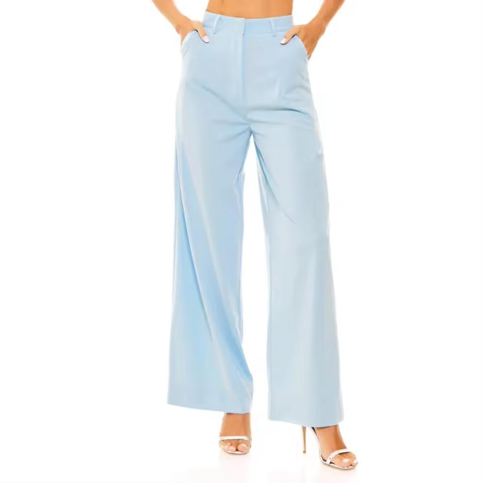 กางเกงขายาวสตรีทรงตรงเข้ารูปผ้าฝ้ายผสมเข้ารูปแบบลำลองสีพื้นกางเกงขายาวสำหรับผู้หญิง