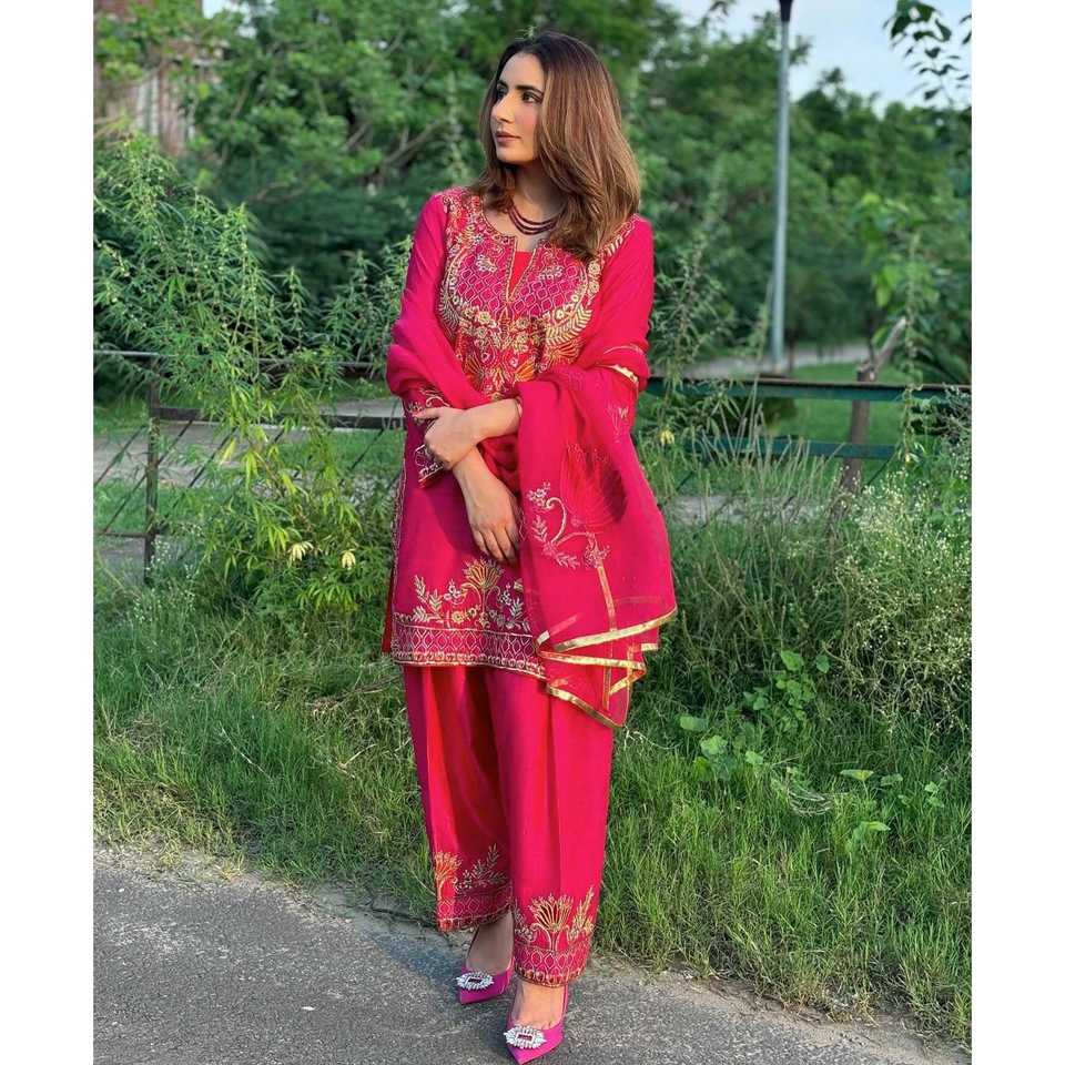 Women's Party Wear Pink Size L Embroidered Sequence Work Suit Set by Maruti Creation