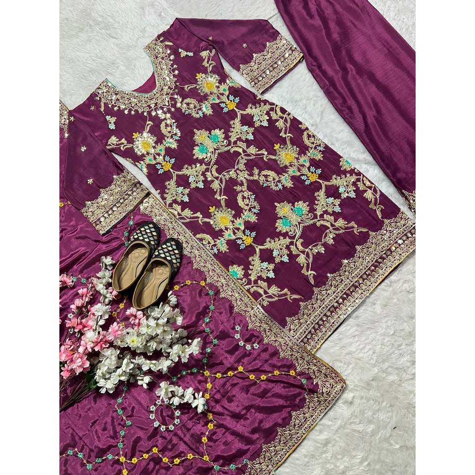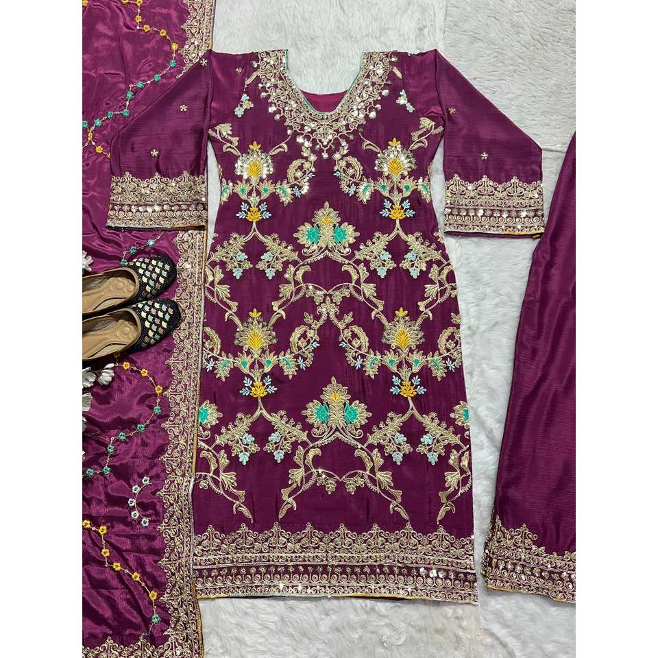 Women's Party Wear Embroidered Suit Set with Sequential Work Coding