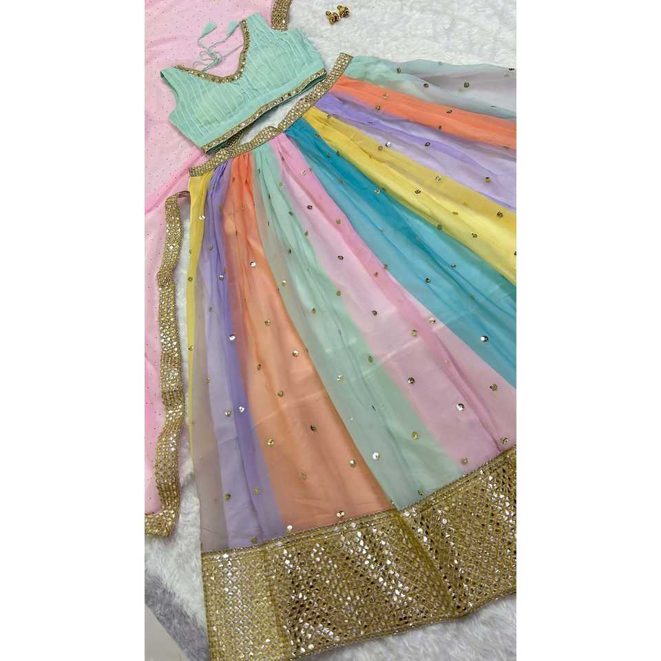 Lehenga choli ชุดปาร์ตี้สำหรับผู้หญิงพร้อมชุดทำงานกระจกกระดาษสุดหรู