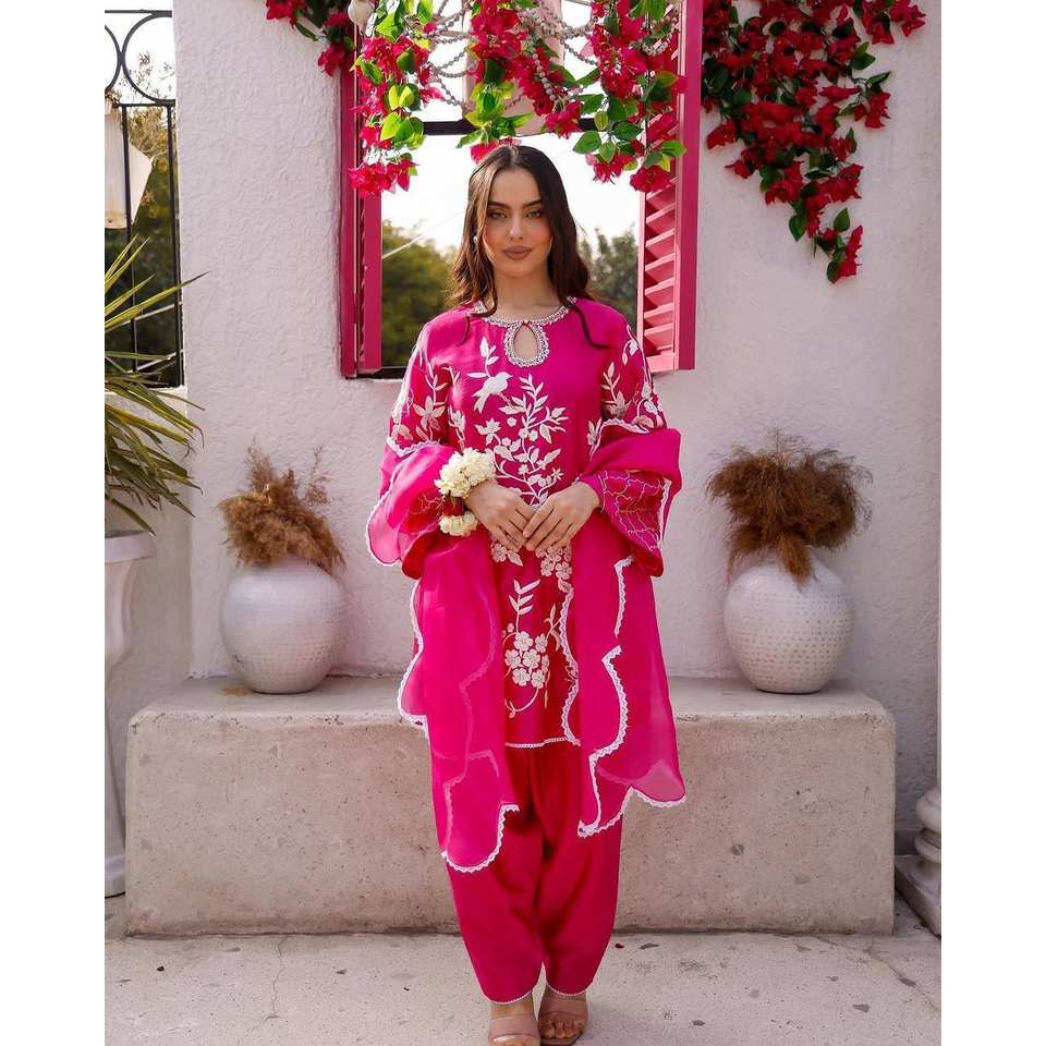 ชุดสูทสำหรับปาร์ตี้ของผู้หญิงชุดสูทงานปาร์ตี้แบบถักด้วยด้ายและลำดับเสื้อท่อนล่างและ dupatta เพื่อให้ดูสง่างาม