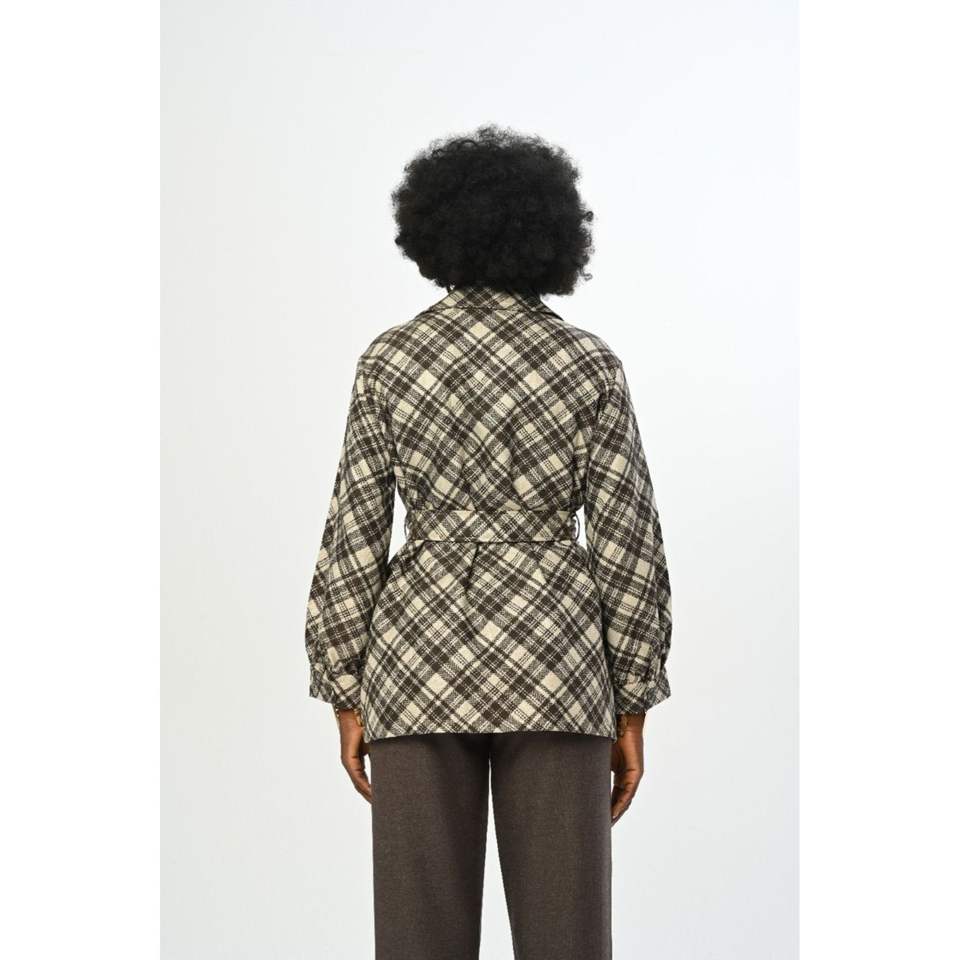 เสื้อเบลาส์ผู้หญิงลายพิมพ์มีกระเป๋าคู่พร้อมเข็มขัด
