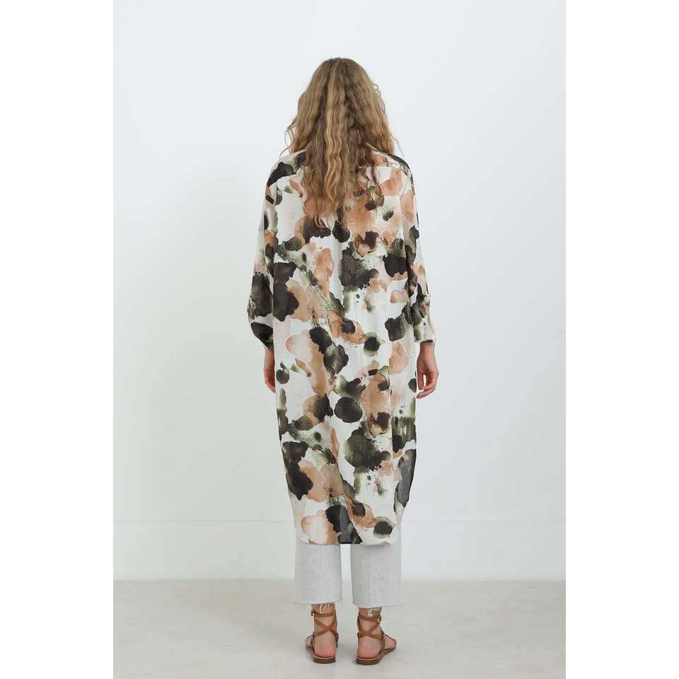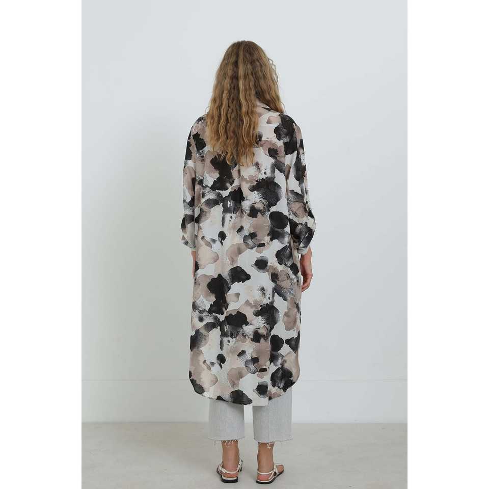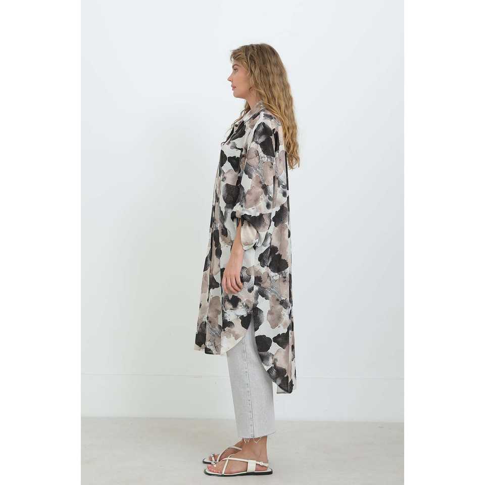 เสื้อเชิ้ตชีฟองโอเวอร์ไซส์ลายพิมพ์สำหรับผู้หญิง ติดกระดุมแบบอสมมาตร สวมใส่สบายๆ ในชีวิตประจำวัน