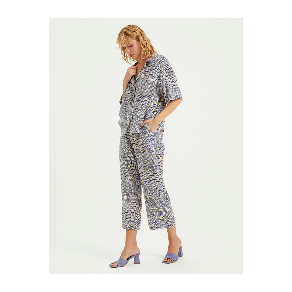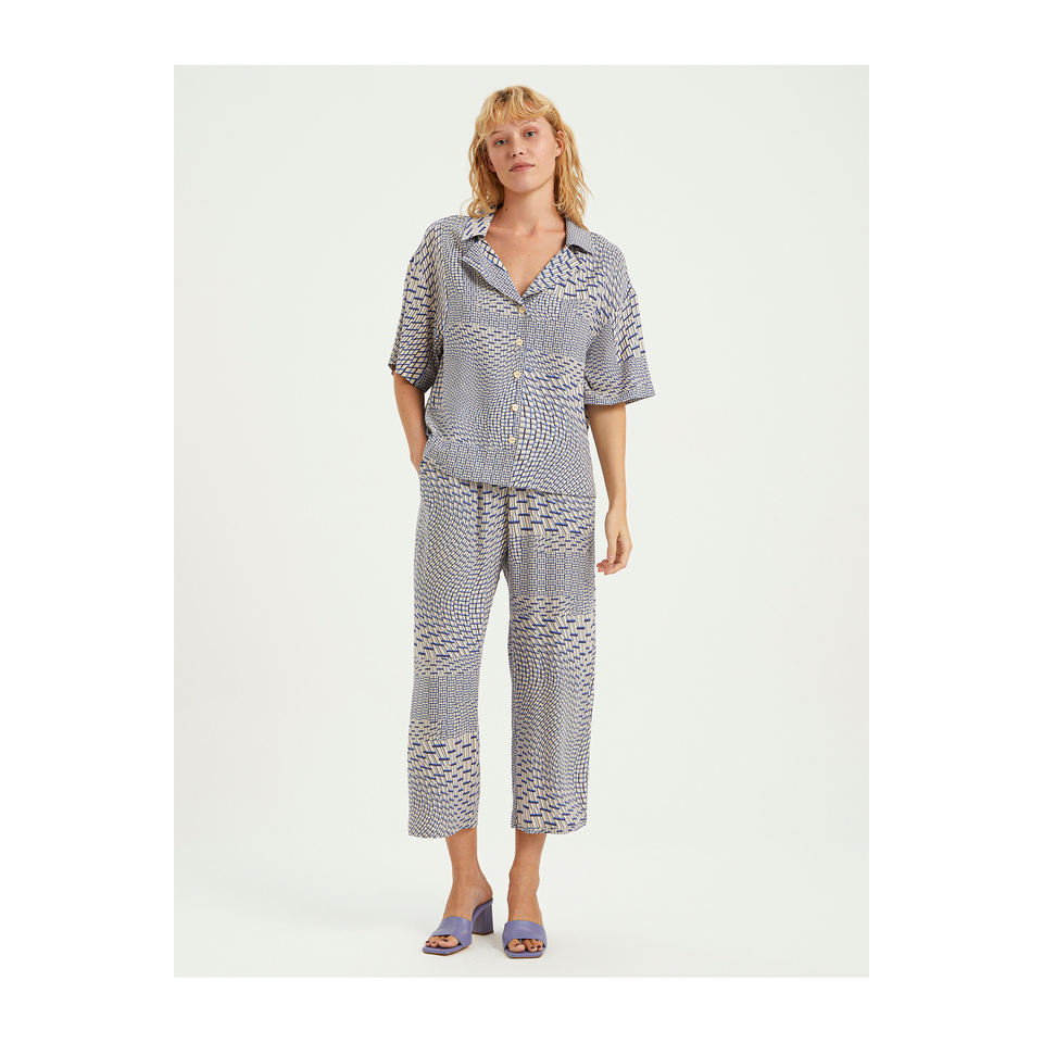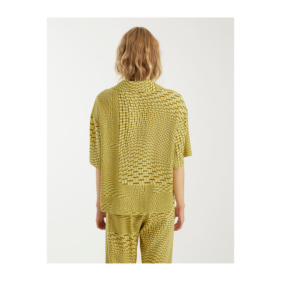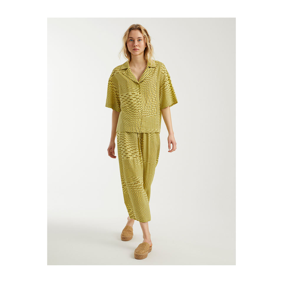 เสื้อเชิ้ตผ้าวิสโคสผสมลายพิมพ์สำหรับผู้หญิง สวมใส่สบายและมีสไตล์ ไม่มีกระเป๋า แขนมาตรฐาน สีสันสดใสมาก