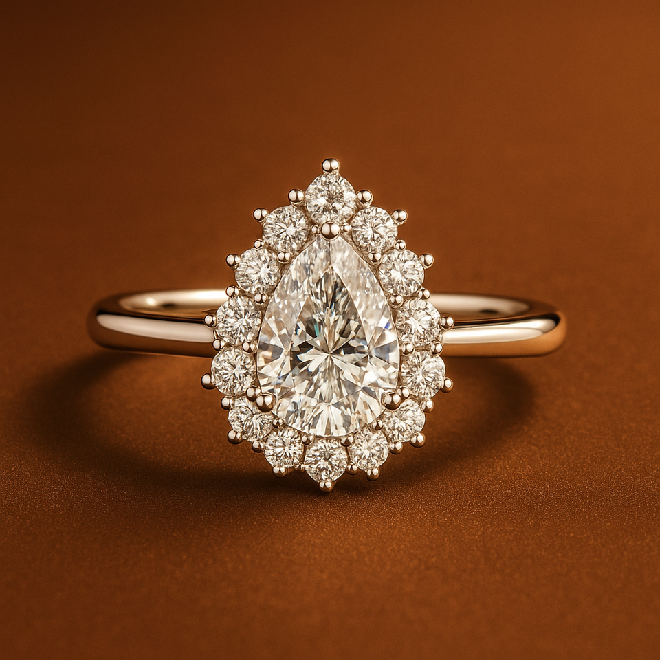 แหวนเพชรทรงลูกแพร์สำหรับผู้หญิง แหวนเพชรทรงฮาโลสำหรับงานหมั้น งานแต่งงาน แหวนเพชรสำหรับขอแต่งงาน ทำจากเพชรแล็บและทองคำแท้ 14K แหวนทองคำคุณภาพสูง