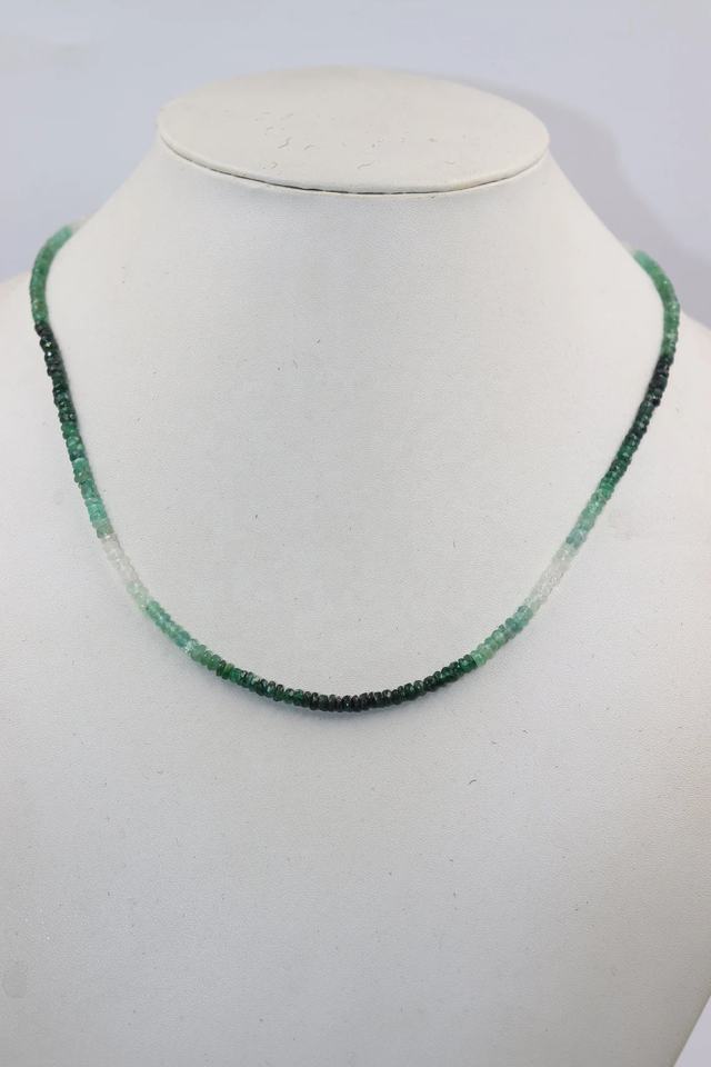 Name:Shaded Emerald Faceted Rondelle Shape Beaded Necklace