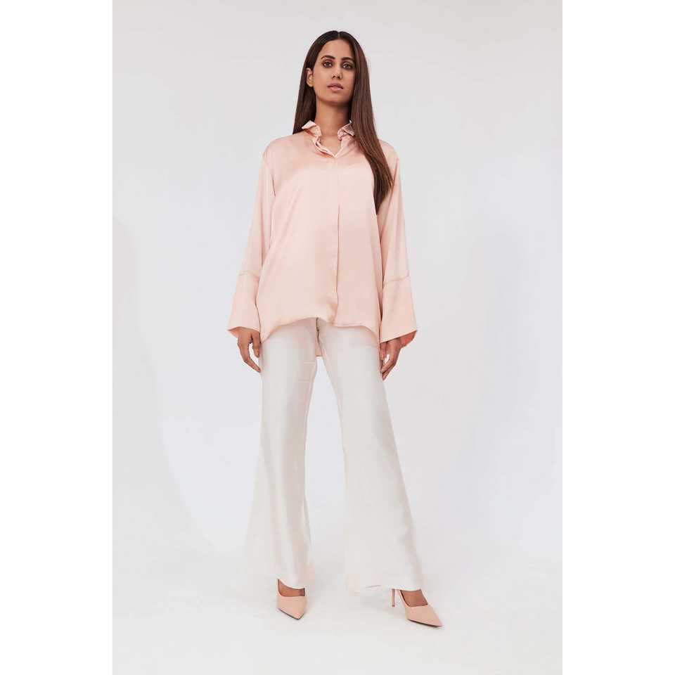 เสื้อสีชมพูสตรีแขนกว้างคอลเลกชันเสื้อสง่างามในขนาด S-2XL