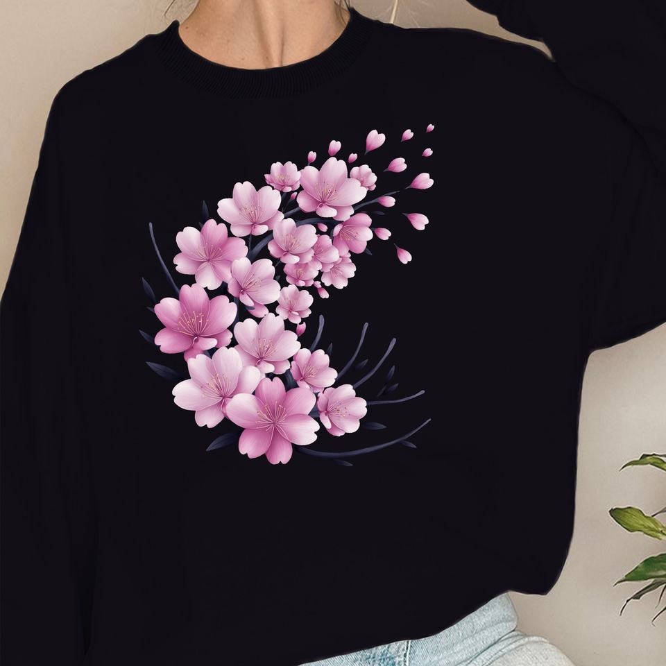 เสื้อสเวตเตอร์พิมพ์ลายดอกซากุระสีชมพูสำหรับผู้หญิงผ้าถักแบบลำลองสไตล์โค้ง