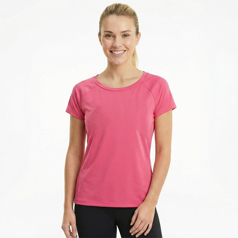 เสื้อยืดออกกำลังกายแขนสั้นสีชมพูสำหรับผู้หญิง ผ้าโพลีเอสเตอร์ 100% ระบายเหงื่อได้ดี เหมาะสำหรับใส่ในยิม