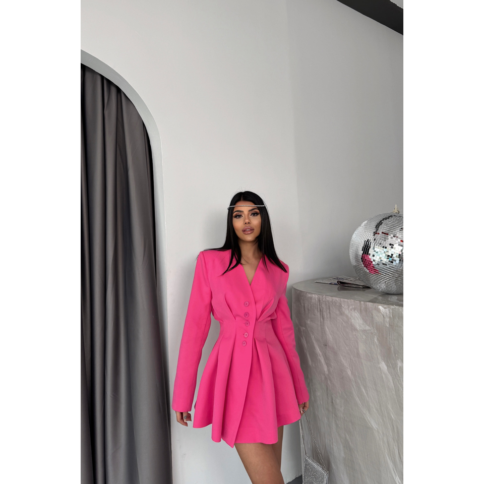 ชุดเดรสสเวตเตอร์สีชมพูสำหรับผู้หญิงพร้อมแจ็คเก็ตแต่งดีเทลลายดาร์ท