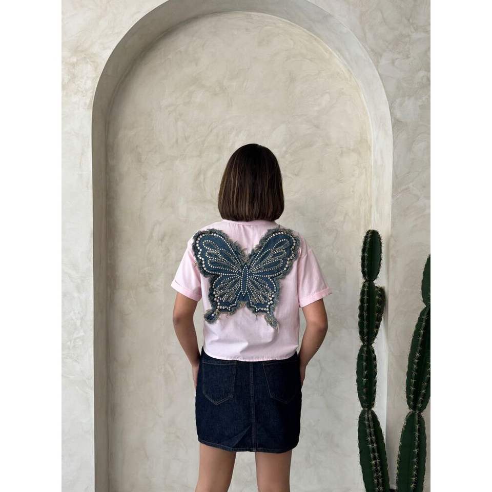 เสื้อผู้หญิงสีชมพูขายส่ง แต่งลายผีเสื้อ