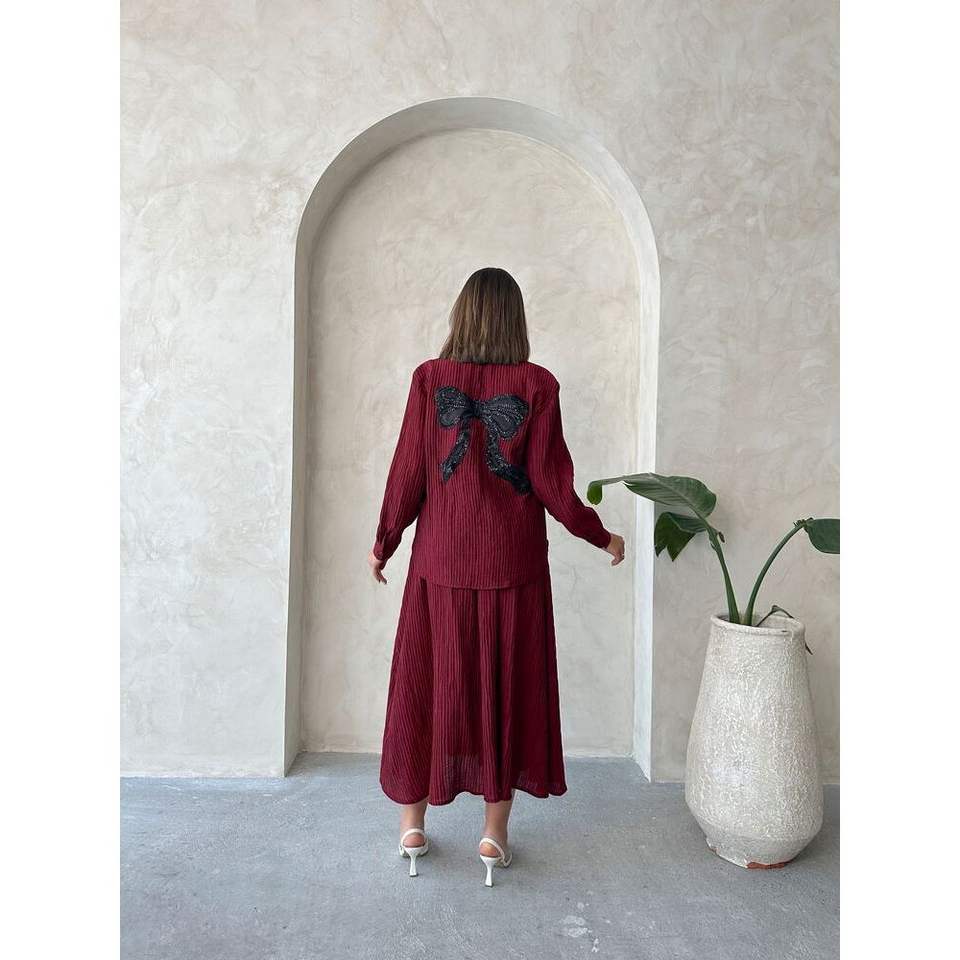 เสื้อเบลาส์จีบระบายสำหรับผู้หญิงพร้อมโบว์ด้านหลัง - เสื้อขายส่ง