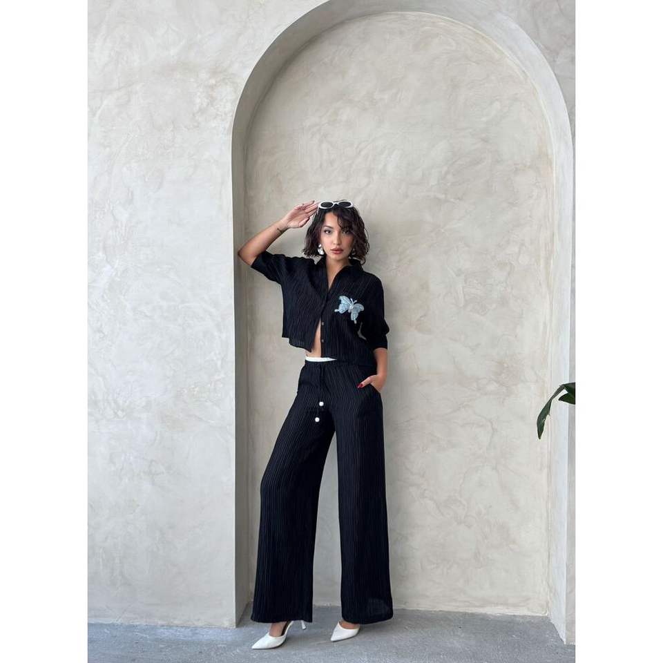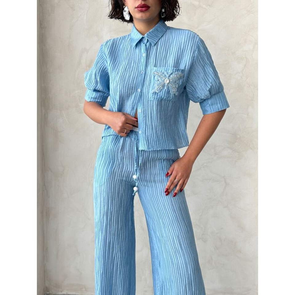 เสื้อผู้หญิงแบบจีบระบายประดับลายผีเสื้อ-เสื้อขายส่ง