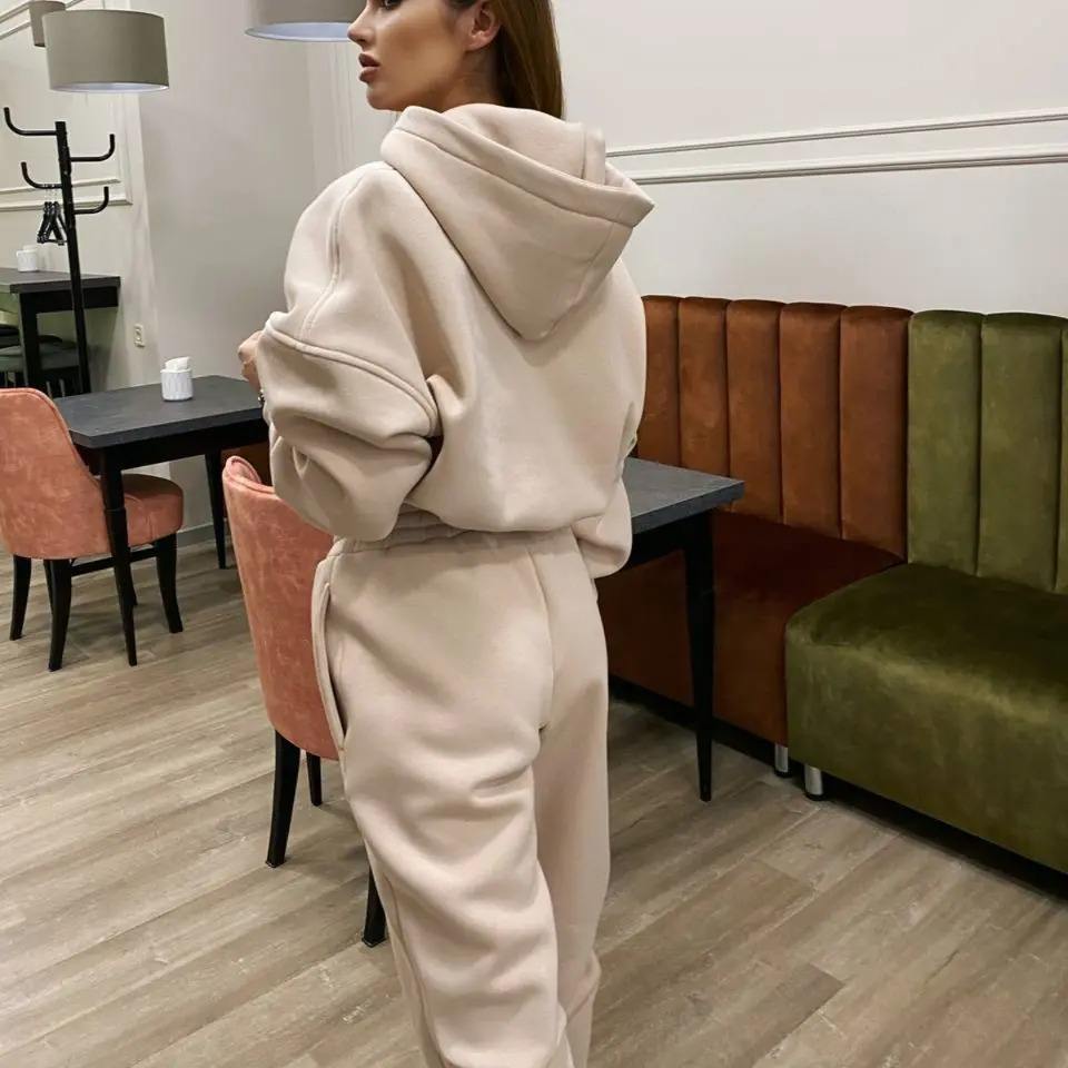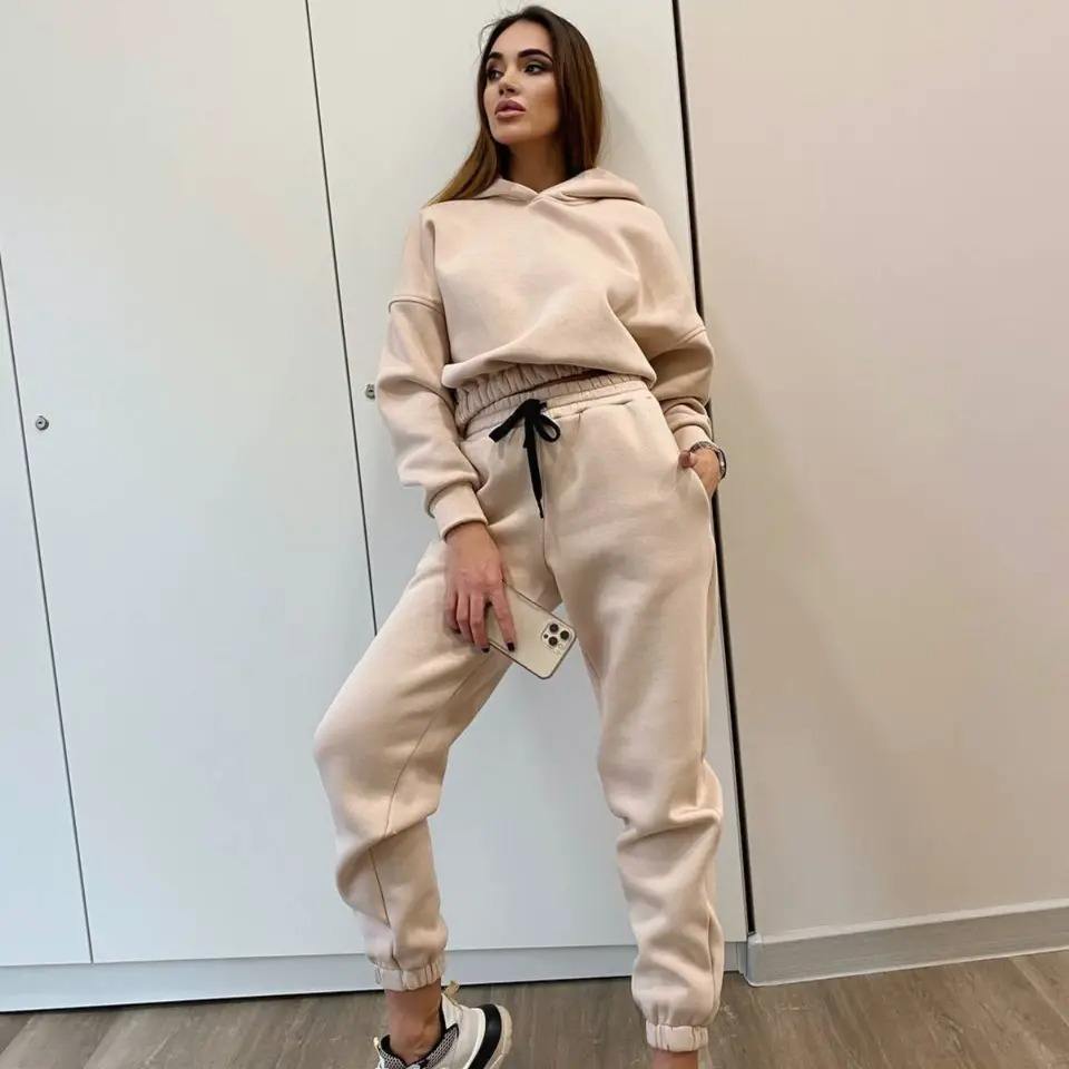 ชุดวิ่งออกกำลังกายผ้าฝ้าย100% สำหรับผู้หญิงขนาดใหญ่พิเศษเสื้อผ้าออกกำลังกายกางเกงมีฮู้ดสำหรับฤดูหนาวขายส่งจากผู้เล่นตะเข็บ