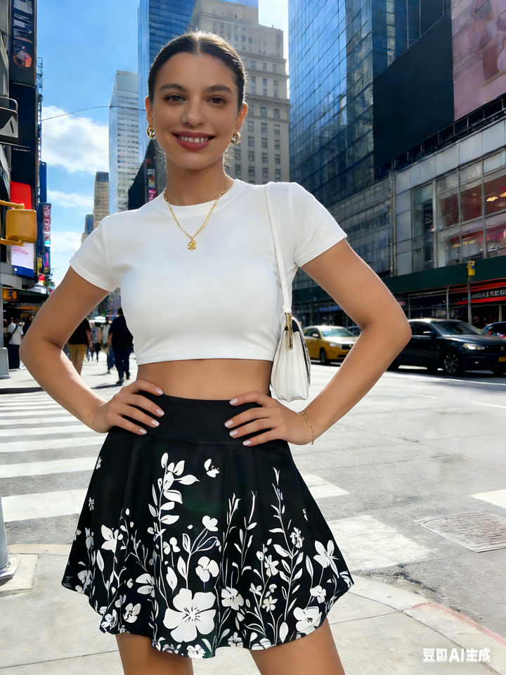 กระโปรงลายดอกไม้สีดำสำหรับผู้หญิงไซส์ใหญ่ - กระโปรงทรงเอเอวสูงแบบมินิพร้อมซับในป้องกันการโป๊