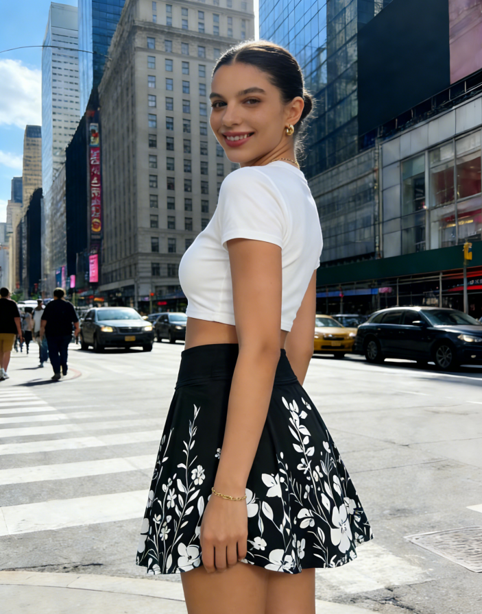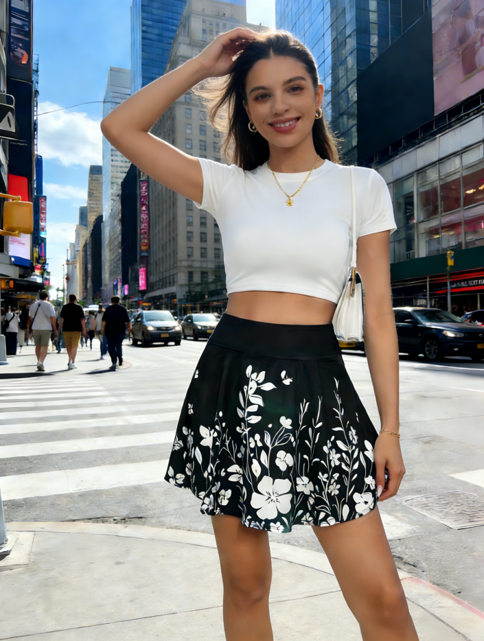 กระโปรงลายดอกสีดำไซส์ใหญ่สำหรับผู้หญิง - กระโปรงทรงเอเอวธรรมชาติแบบมินิ พร้อมซับในกันโป๊ สไตล์คลับ สำหรับฤดูร้อน