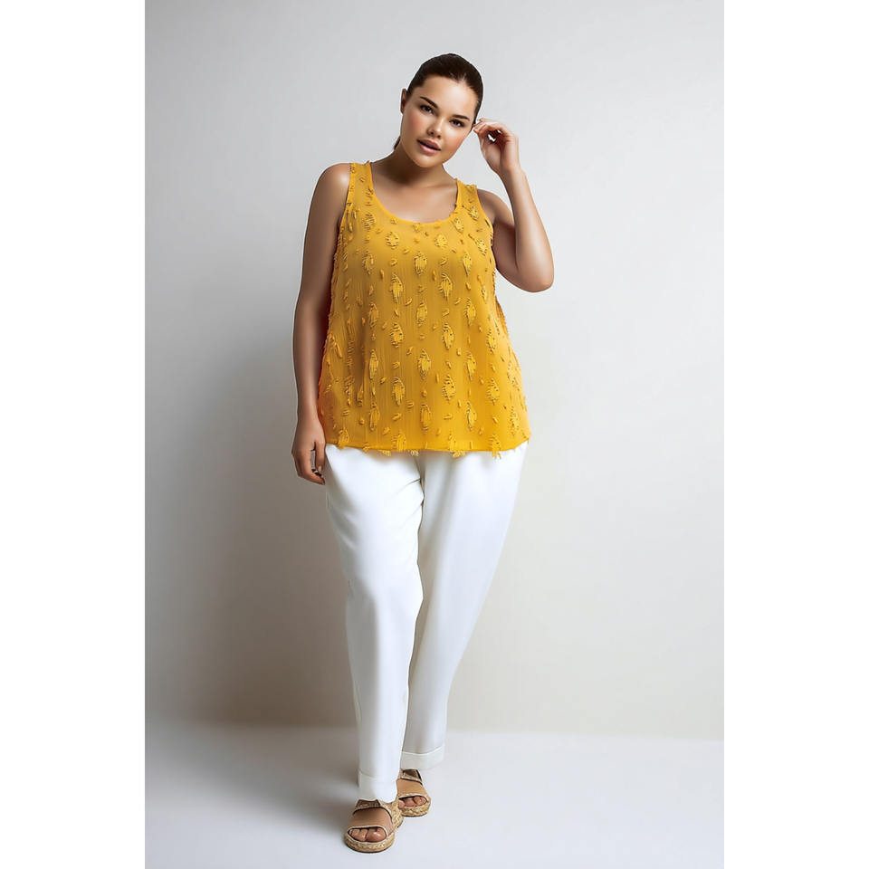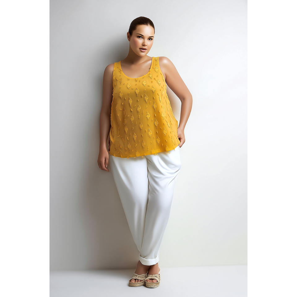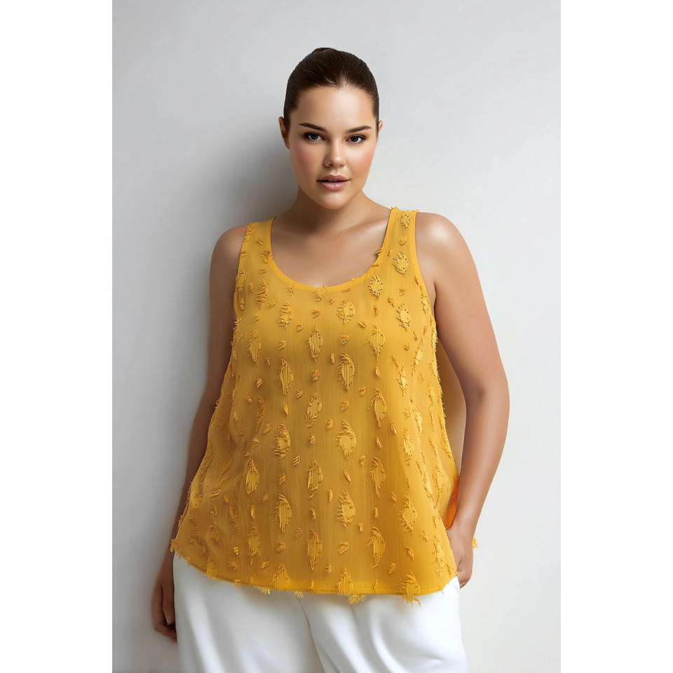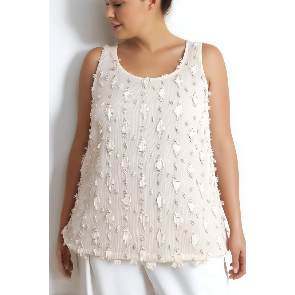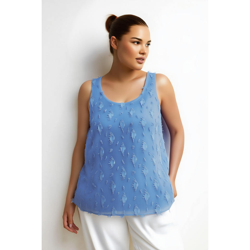 Women's Plus Size Blue U-Neck Zero Sleeve 42-52 Inner Lined Chiffon Fabric Blouse