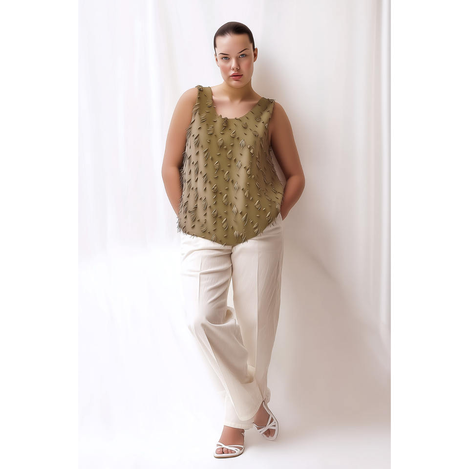 เสื้อเครปคอวีแขนกุดผู้หญิง