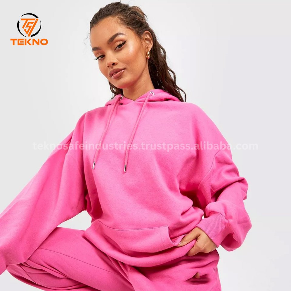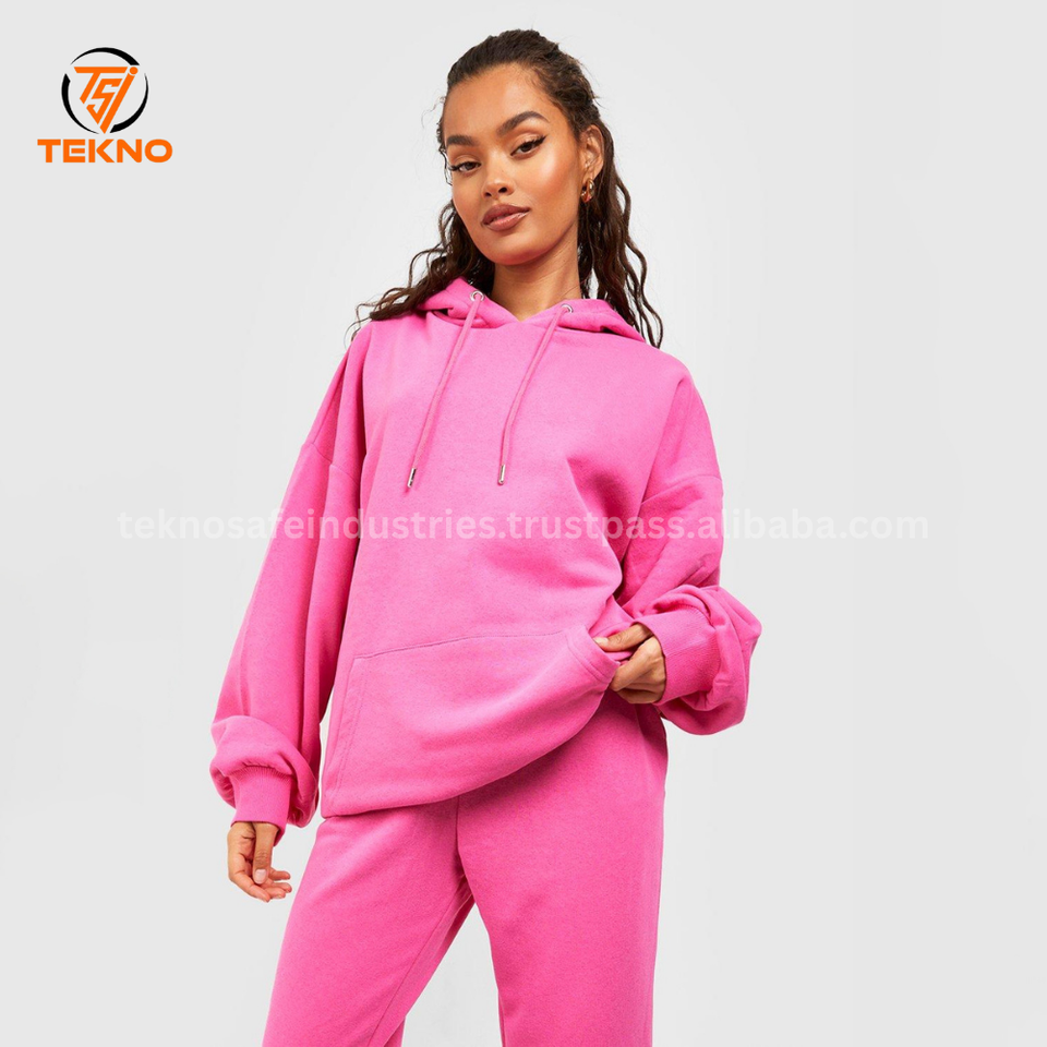 ชุดวอร์มผู้หญิงผ้าคอตตอนโพลีเอสเตอร์ระบายอากาศได้ดีขนาดใหญ่พิเศษกางเกงมีฮู้ดสีพื้นบริการ OEM