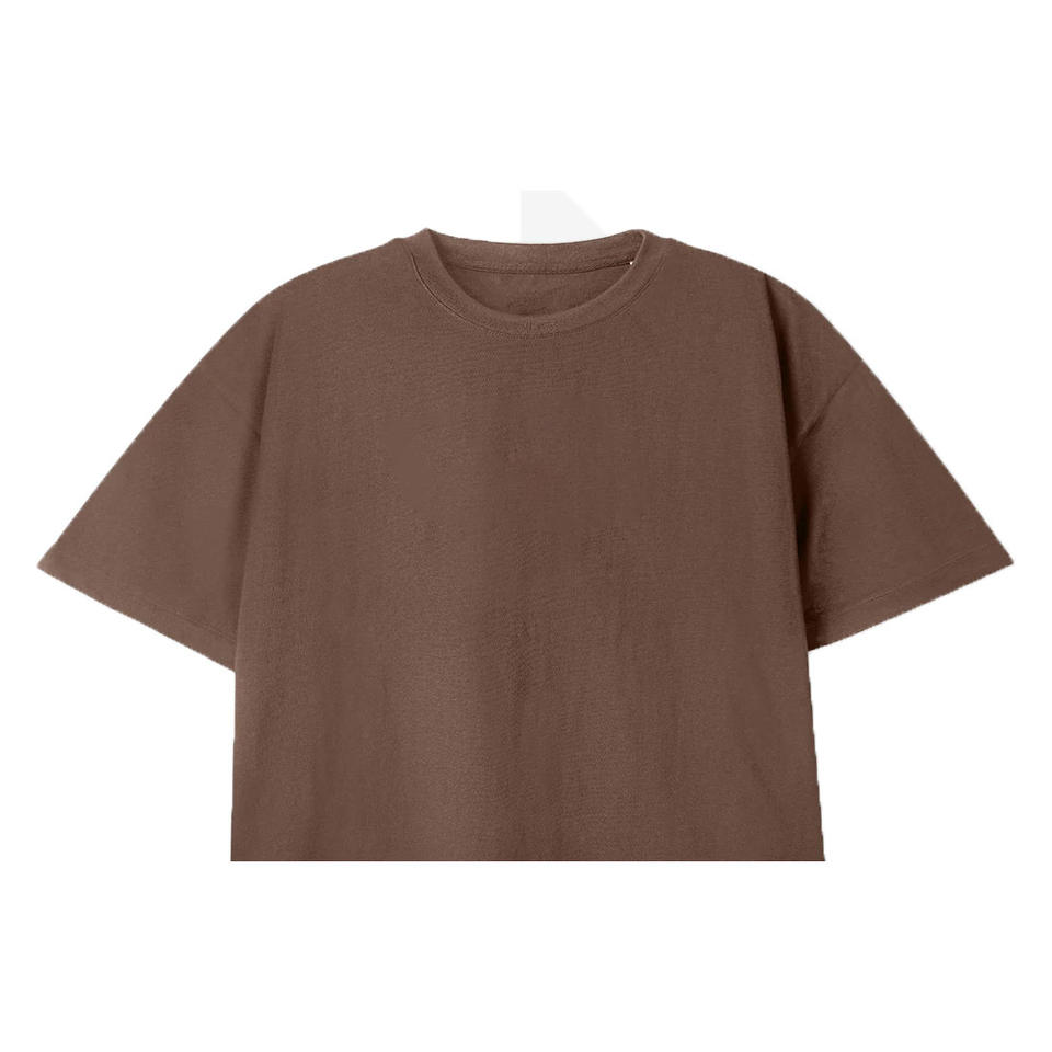 เสื้อยืดแขนสั้นคอกลมไซส์ใหญ่สำหรับผู้หญิง ผ้าฝ้ายออร์แกนิค 100% ระบายอากาศได้ดี เป็นมิตรกับสิ่งแวดล้อม ปักลายลำลอง สีน้ำตาล