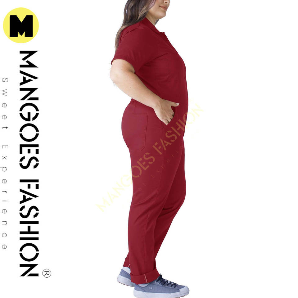 Women's Plus Size Flex Short Sleeve Waterproof Coverall English Red Color-ANSI Class 1 Anti-static for Electronics Comfortable