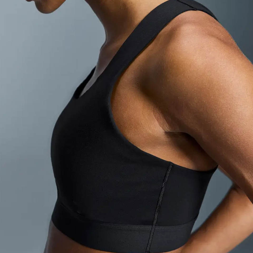 เสื้อชั้นในกีฬาโยคะสำหรับผู้หญิงไซส์ใหญ่ รองรับทรงได้ดี พร้อมโลโก้ด้านหน้า ระบายอากาศได้ดี ผลิตจากผ้าสแปนเด็กซ์/โพลีเอสเตอร์ ผลิตในประเทศปากีสถาน