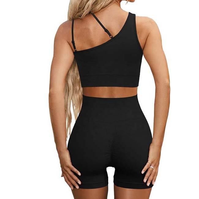 ชุดออกกำลังกายไร้รอยต่อสำหรับผู้หญิงเสื้อผ้า2ชิ้น100% บราเอวสูงบราเล่นกีฬาแบบเปิดไหล่ข้างเดียวชุดเล่นโยคะขนาดพลัสไซส์ผ้าคอตตอน