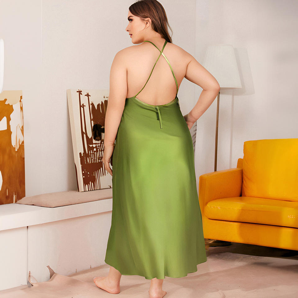 ชุดนอนผ้าซาตินแบบไร้สายสำหรับผู้หญิงไซส์ใหญ่ สีพื้น เรียบหรู เซ็กซี่ เอวสม็อคยืดหยุ่น ระบายอากาศดี สวมใส่สบาย เหมาะสำหรับฤดูร้อน