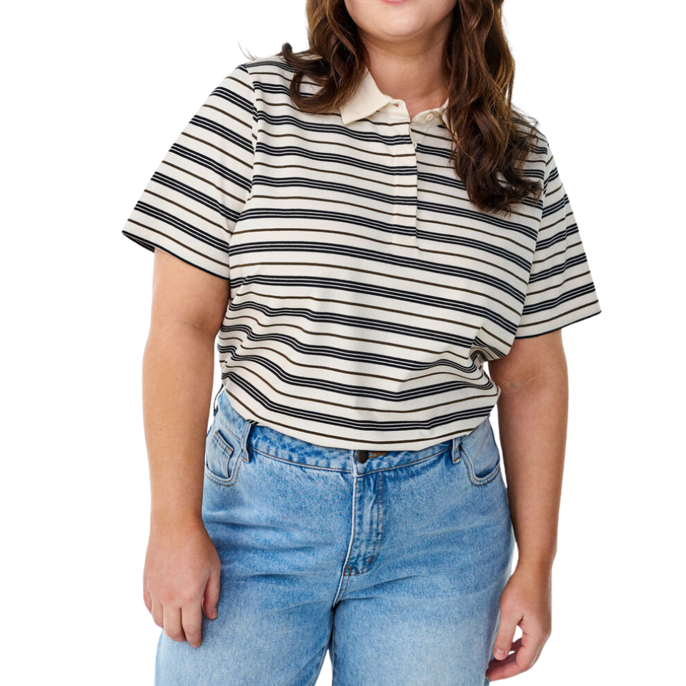 เสื้อโปโลลายทางไซส์ใหญ่สำหรับผู้หญิง แขนสั้น ขายส่ง รับผลิตตามแบบ OEM ODM