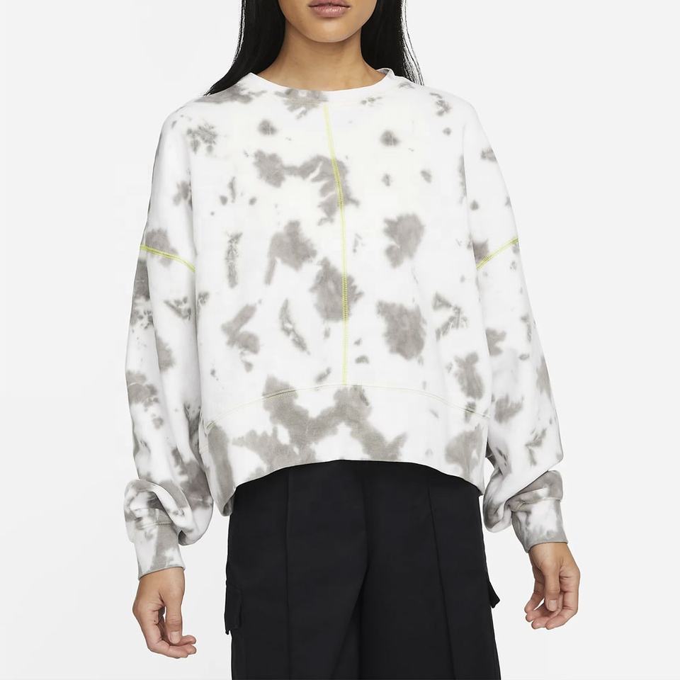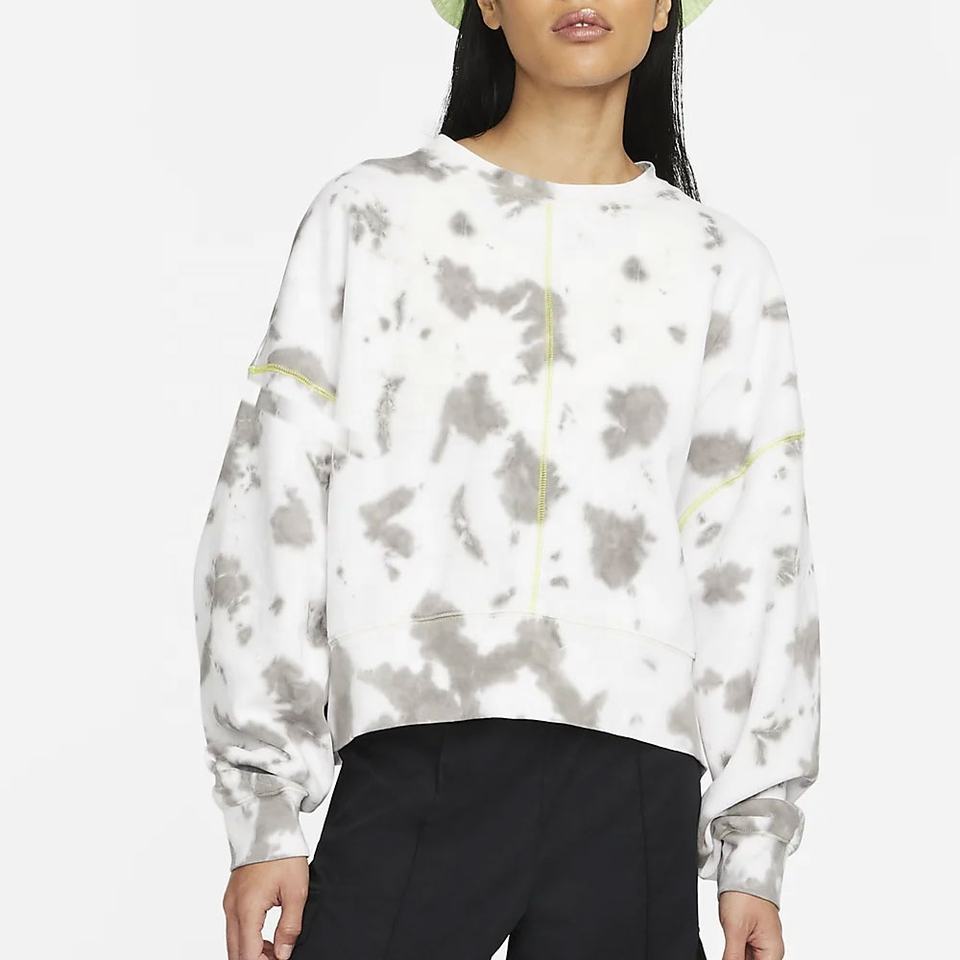เสื้อสเวตเตอร์ผ้าฝ้ายกันหนาวแขนยาวสำหรับผู้หญิง, เสื้อสเวตเตอร์เปิดไหล่ตกสีย้อมแบบสวมหัวขนาดพลัสไซส์