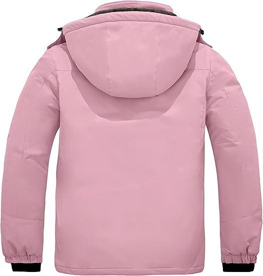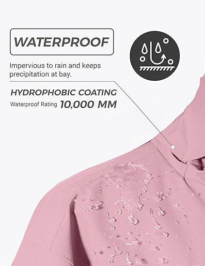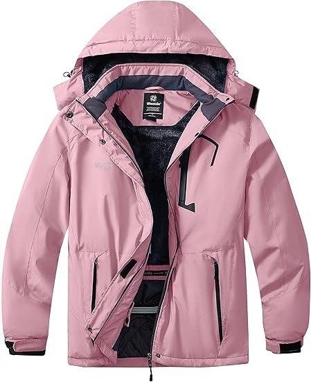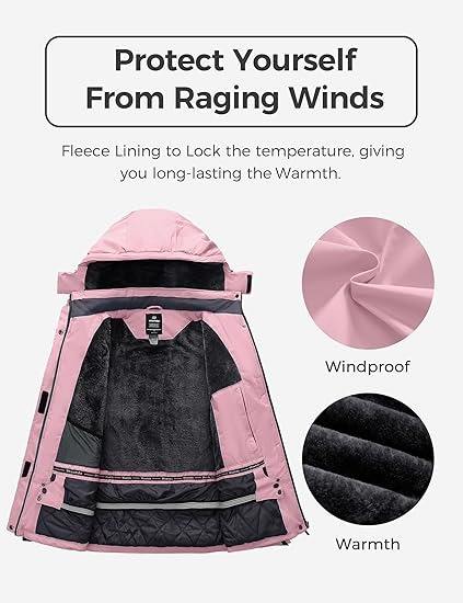 แจ็กเก็ตสกีกันน้ำสำหรับผู้หญิง, เสื้อแจ็คเก็ตกันลมให้ความอบอุ่นมีฮู้ดสำหรับภูเขาหิมะทำจากผ้าใบ