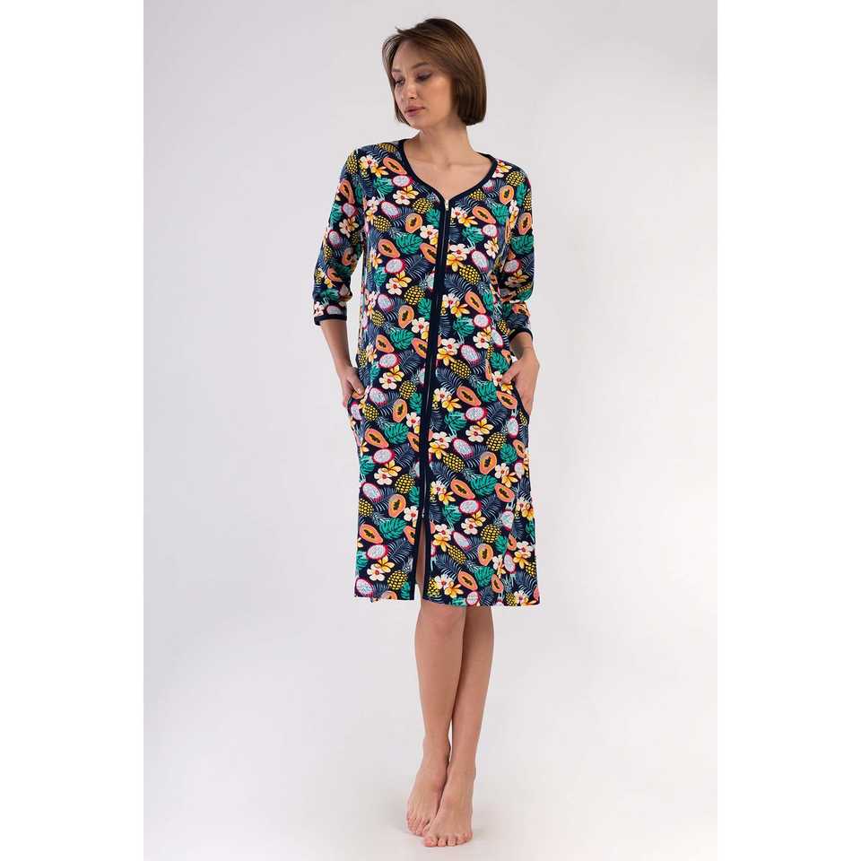 Women's Plus Size XXL 3/4 Sleeve Zippered Pocket Sleepwear Home Dress
