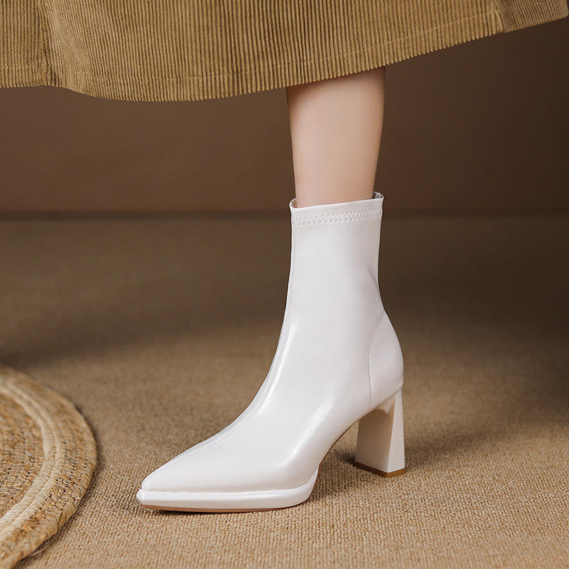 รองเท้าส้นสูงหัวแหลมแบบส้นเข็มหนังแท้พร้อมสายรัดข้อเท้าสำหรับงานปาร์ตี้และงานแต่งงาน รองเท้าส้นสูงสำหรับผู้หญิง