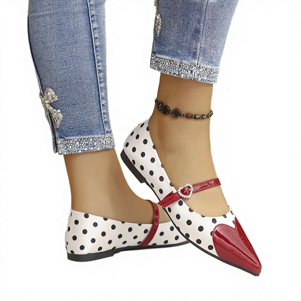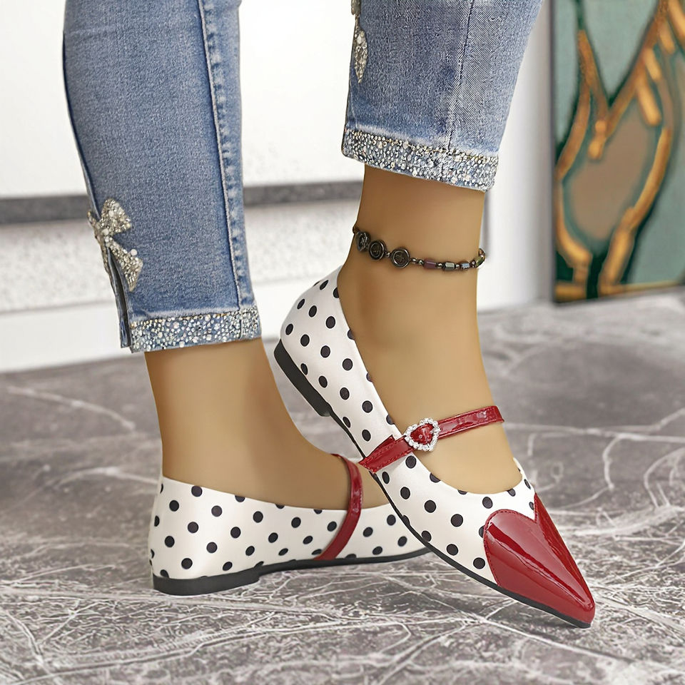 รองเท้าส้นเตี้ยแบบสวมลายจุดรูปหัวใจสำหรับผู้หญิง รุ่นใหม่ สไตล์บัลเลริน่า สำหรับฤดูใบไม้ผลิ/ฤดูใบไม้ร่วง/ฤดูหนาว
