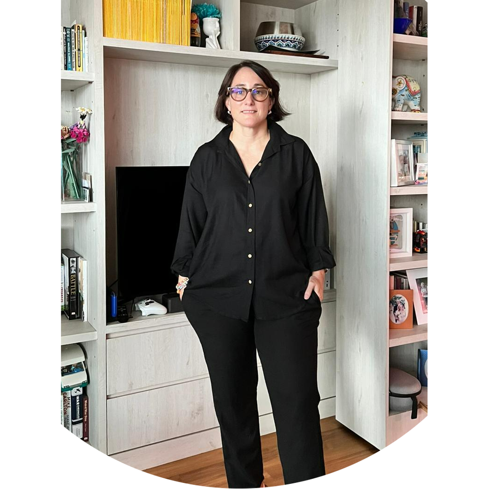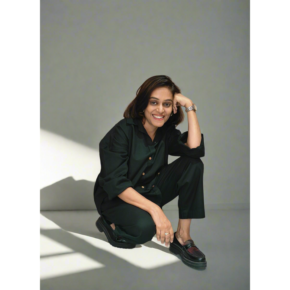 ชุดเซ็ตผ้าลินินคอตตอน 100% ทรงโอเวอร์ไซส์/ทรงหลวม สีดำ สำหรับผู้หญิง
