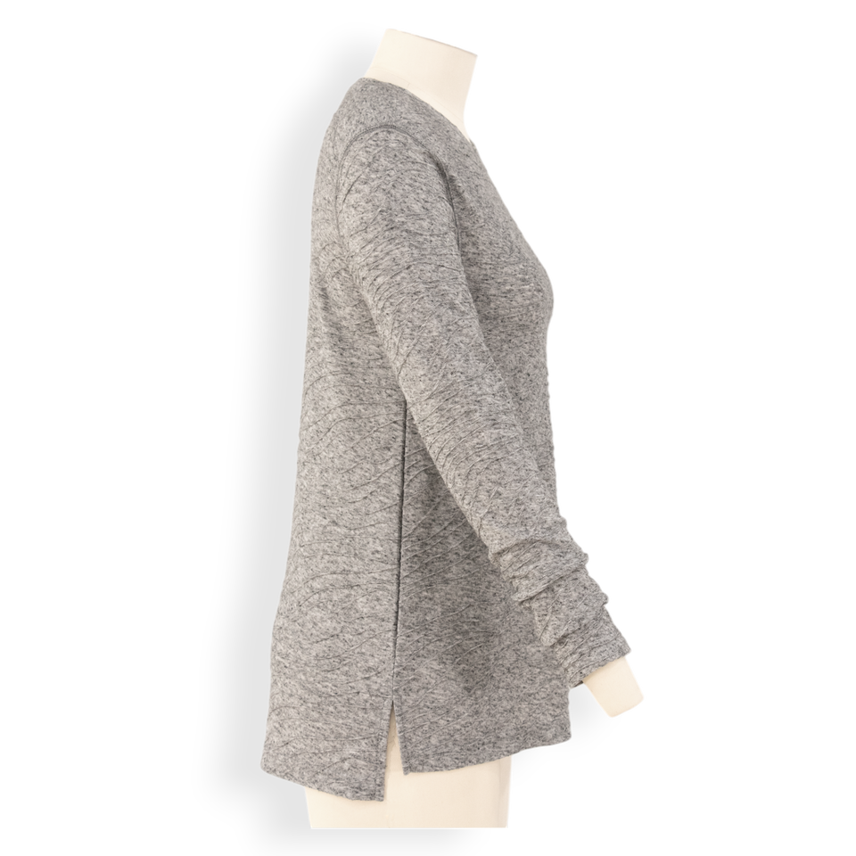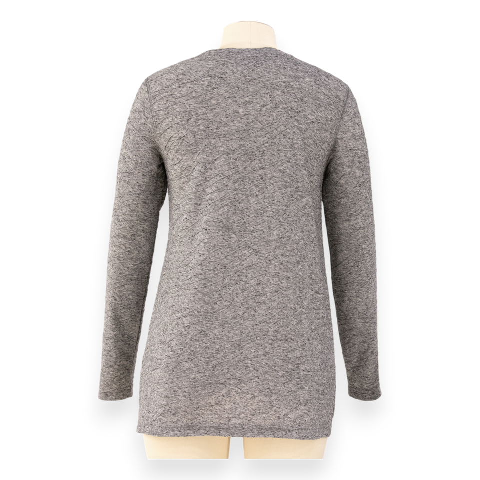 เสื้อแขนยาวสีเทาพรีเมียมสำหรับผู้หญิง – ผ้าถักแจ็คการ์ด เสื้อผ้าลำลองสไตล์โมเดิร์น | โลโก้สั่งทำพิเศษ ผู้ผลิตจากกัมพูชา