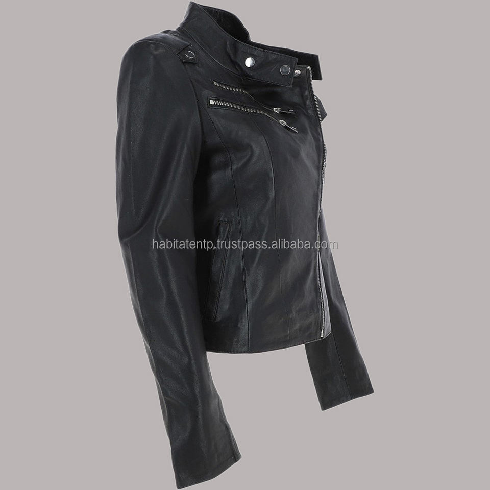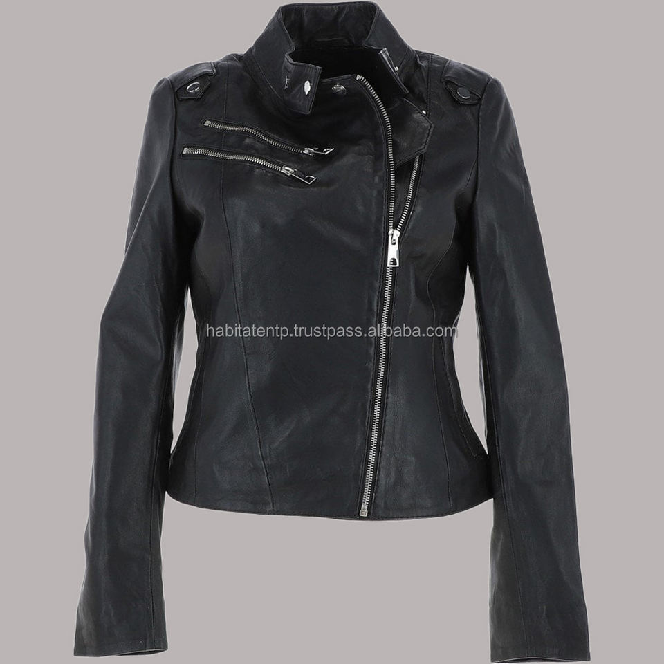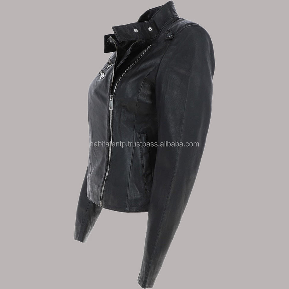 Women's Premium Moto Jacket Antique Vintage Style Ultimate Sheep Skin Leather Biker Jacket Breathable Pearls Embroidered Stripe